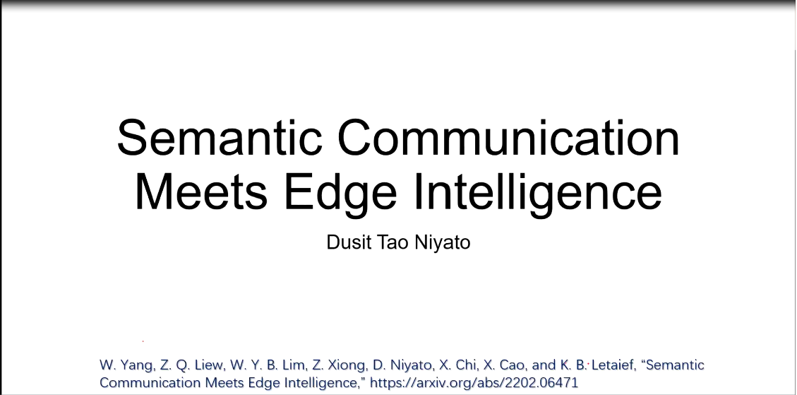 新加坡南洋理工大学Dusit Niyato教授做了题为“Semantic Communication Meets Edge Intelligence”的报告,讲述了频谱资源日渐稀缺背景下语义通信应用的重大意义,并对语义通信的背景、框架以及其与边缘智能的相互作用进行了详实地说明;加拿大滑铁卢大学Xuemin (Sherman) Shen教授做了题为“Computation Offloading and Task Scheduling on the Network Edge”的报告,对下一代无线网络移动边缘计算技术中的计算资源管理进行了深入和透彻的分析,讨论了满足多样化服务质量要求的计算卸载和任务调度策略;加拿大滑铁卢大学Weihua Zhuang教授做了题为“Medium Access Control for Industrial IoT”的报告,对工业物联网的介质访问控制协议进行了详细介绍;日本东北大学NeiKato教授做了题为“Task Scheduling for Multi-Access Edge Computing in IRS-Aided Vehicular Networks”的报告,介绍了智能反射板辅助的车联网中任务调度策略。