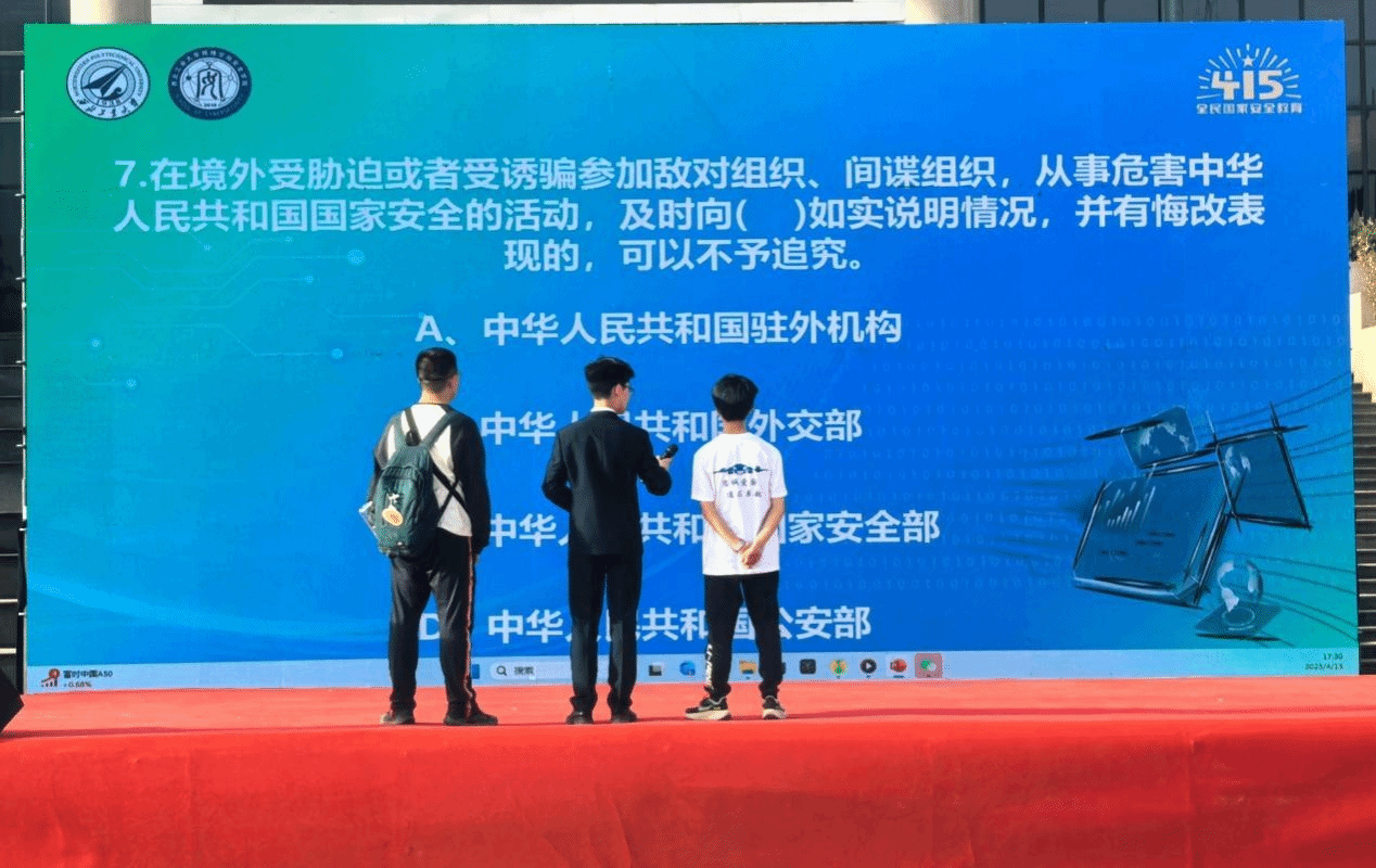 活动现场周围还布置有“全民国家安全教育 走深走实十周年”——“4·15”全民国家安全教育日主题展,内容涵盖总书记关于总体国家安全观的重要论述、国家安全基本知识及相关法律体系、案例警示、国家安全西工大在行动等。bevictor伟德官网宣讲队成员胥庚炜,发挥专业所长为现场同学们讲解了相关内容,并对同学们提出的相关问题做出了耐心的解答。图文结合、现场答疑的学习方式让同学们沉浸在国家安全、网络安全知识学习的氛围里,现场反响热烈,同学们收获满满。