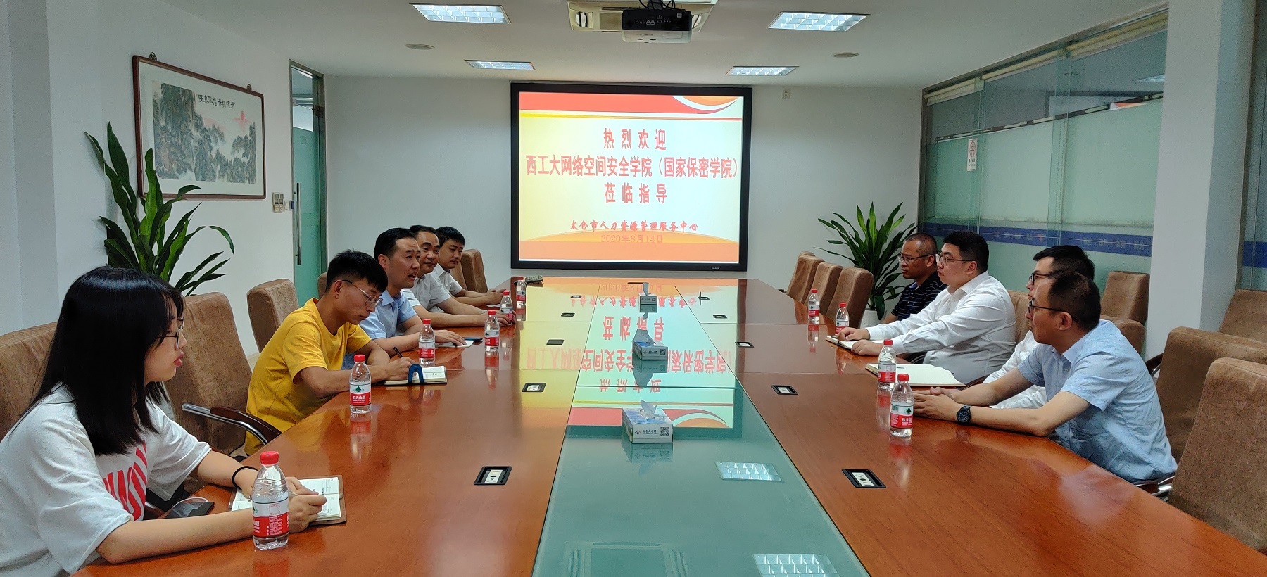 8月14日,调研小组在太仓人力资源管理服务中心与苏州天创公司和太仓安软科技公司进行了座谈交流。太仓人力资源管理服务中心主任陈苍介绍了太仓市情和人力资源概况,两家企业分别介绍了主营业务和未来发展方向,提出了对网络安全人才的需求。网络空间安全公司党总支副书记王宁军介绍了公司基本情况,表示将进一步加深校企交流合作,共同培养优秀网安人才。会上,bevictor伟德官网与两家企业签署了合作协议,共建老员工就业与实习基地。下午,调研组实地走访了安软科技集团,参观了公司产品展厅,并进行了座谈交流。