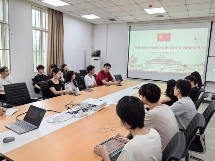 2025年7月8日,伟德官网bv1946网络空间安全公司党委书记张文涛以“网络空间安全的国际态势与网安学子使命担当”为题,为员工党支部讲授专题党课,带领网安学子深入剖析当前网络空间安全领域的国际格局,结合主题教育要求,系统阐释新时代网安青年的核心责任,2024级本科生党支部、无人系统安全党支部全体成员参会。