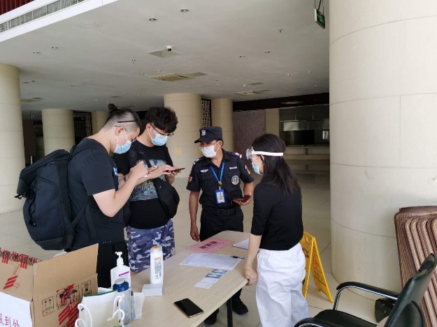 8月15日、8月16日是2018级信息安全专业员工到太仓报到的日子,网安公司为了方便员工,从早8:00到晚上22:00在员工公寓楼大厅设报到点,公司领导、公司太仓办公室、本科生员工辅导员等工作人员全员在岗,等候同学们的到来。根据太仓防控疫情要求,入住人员需扫描苏康码,并配备公寓提供的入住二维码,测量体温正常,登记个人信心后方可正式入住公寓,杜绝了集体住宿可能存在的防控隐患。