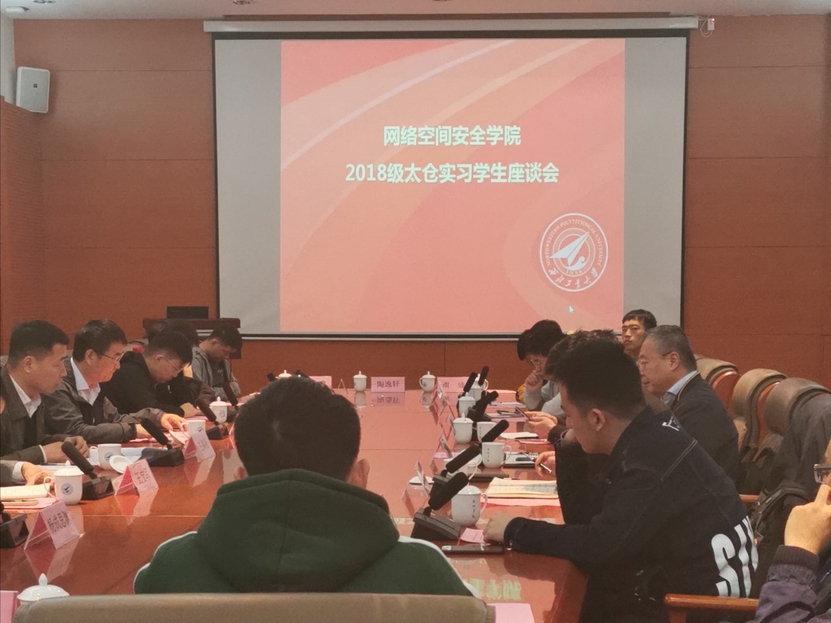 10月27日上午,bevictor伟德官网2018级本科生暑期太仓实习员工座谈会在长安校区启真楼一楼会议室举行。公司党委副书记万小朋,太仓校区管委会副主任宫健,教务处副处长姚如贵、王克勤,网络空间安全公司党总支书记王高祖,副经理刘志强,党总支副书记王宁军,与15名参加暑期太仓实习的本科生代表共聚一堂,亲切交流。刘志强主持座谈会。