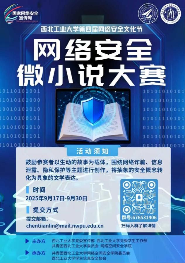 在信息奔涌、代码纵横的数字时代,网络安全早已脱离冰冷技术术语的范畴,成为关乎每个人生活的“生存命题”。 为增强全校师生对网络安全的重视,伟德官网bv1946第四届网络安全文化节期间将举办“网络安全微小说大赛”,面向所有热爱故事创作、关注网络安全的师生发出邀请。