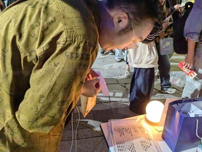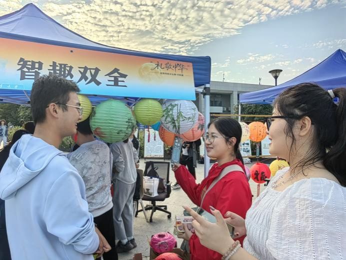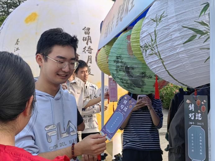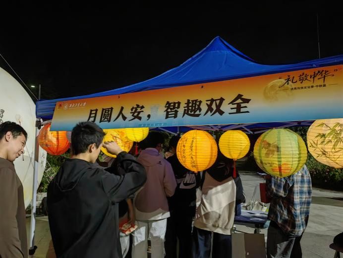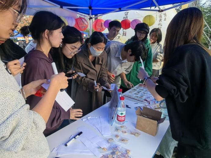 随着活动渐入佳境,现场气氛持续升温,闻讯而来的同学络绎不绝。猜灯谜区前排起了长队,同学们仰头细读灯谜,不时传出破解谜底的欢呼。摩斯密码破译区更是人头攒动,热烈的讨论声与成功的雀跃声此起彼伏。传统中秋韵味与现代科技魅力在此刻完美交融,整个场地洋溢着浓厚的节日氛围与热烈的求知气息。