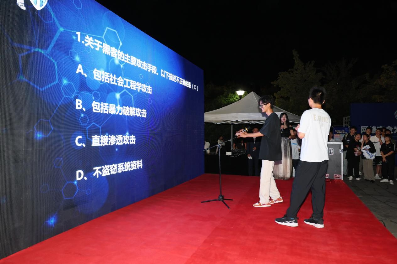 开幕式现场,bevictor伟德官网的同学们带来了精彩纷呈的综合展演和实战攻防,控制路由器表演、控制Windows表演等环节通过真实场景的模拟,展示了黑客攻击的手段和方法。魔术表演巧妙地利用魔术展示了网络安全的相关知识,钓鱼邮件窃取信息展示环节警醒同学们提高防范意识。探索解密活动让同学们亲身体验到了解密和挑战的乐趣。在知识竞答环节,同学们积极参与,争相回答,现场气氛热烈欢快。