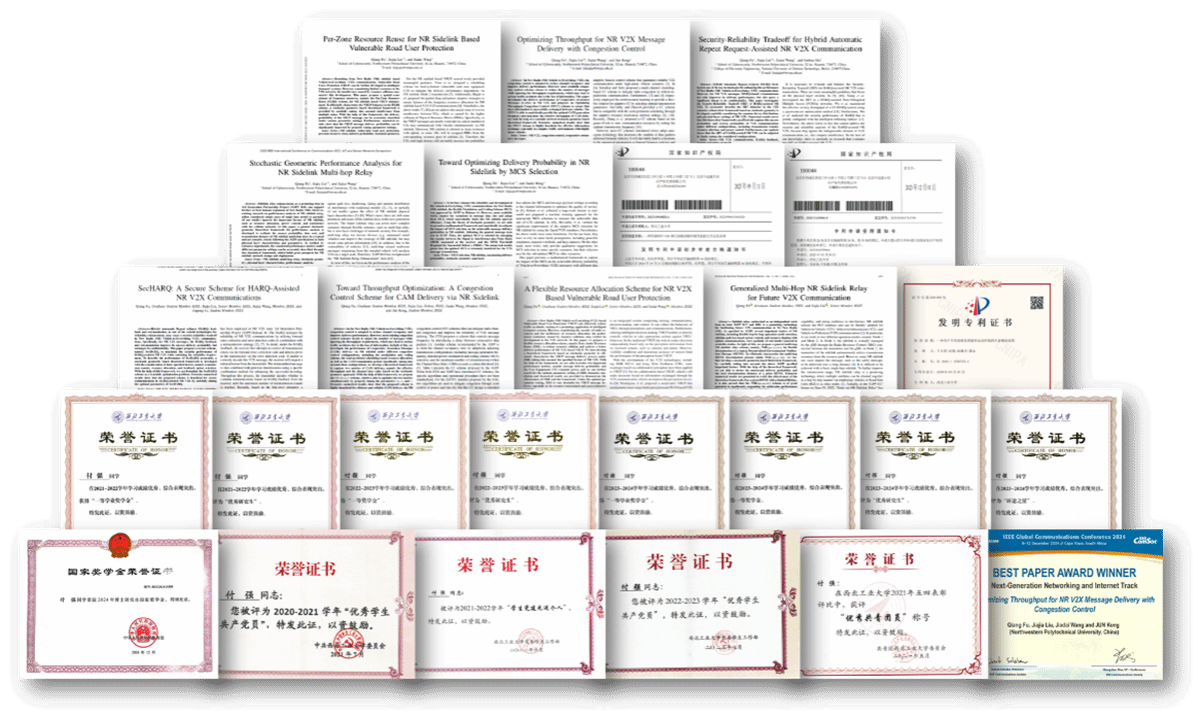 付强围绕5G/6G网络安全、车联网安全等关键领域开展科学研究,勤奋钻研、勇于创新。博士期间以第一作者发表CCF-A类、SCI一区TOP等高水平学术论文10篇、申请/获授权发明专利3项。获国家奖学金、研途之星、学业一等奖学金,并连续三年获评“伟德官网bv1946优秀研究生”荣誉。
