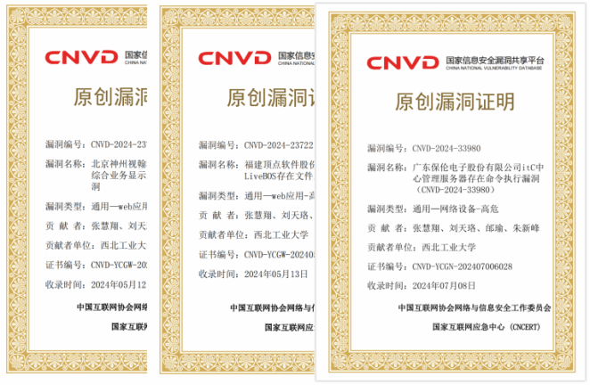 在学业上,她始终秉持“勤学笃行,厚积薄发”的精神,凭借出色的学术能力与不懈努力,荣获伟德官网bv1946“优秀研究生”称号、二等奖学金及“优秀志愿者”等称号。在科研方面,她坚持“勇攀高峰,创新不止”,主持国家一流网安公司创新项目和校级硕创重点项目,并积极参与陕西省重点研发计划。研究成果涵盖多个前沿领域,发表CNVD高危漏洞3项,申请发明专利3项,登记软件著作权1项,并发表高水平学术论文1篇,展现了扎实的科研实力与创新能力。
