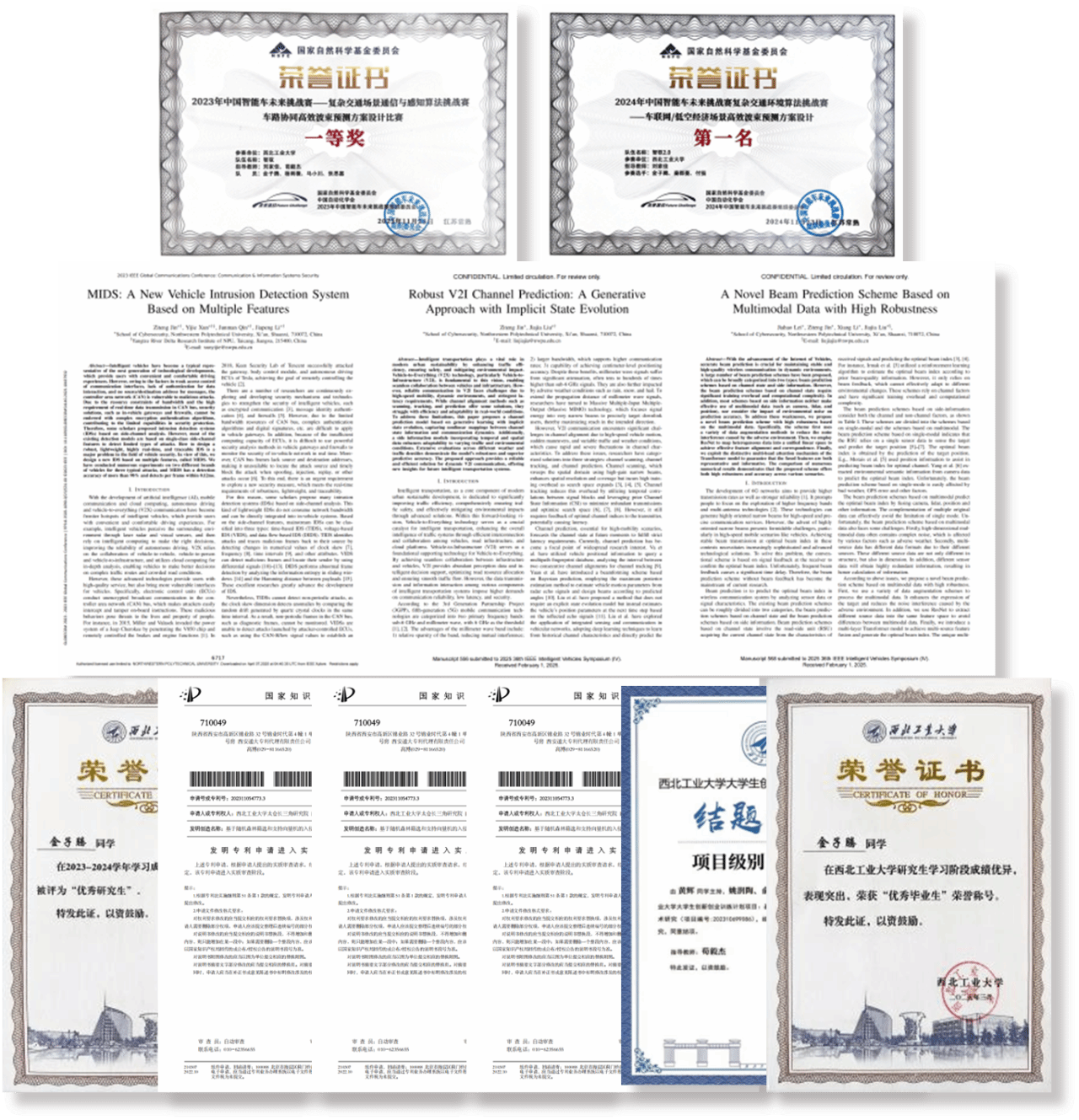 金子腾在研究生期间展现了卓越的创新精神和进取心。连续两年斩获国家自然科学基金委主办的中国智能车未来挑战赛第一名,赛事获央视报道。发表国际高水平学术论文3篇,申请发明专利3项。指导本科生参与老员工创新创业项目,获评国家级并结题。获学业一等奖学金、优秀研究生、优秀毕业生等5项荣誉奖励。