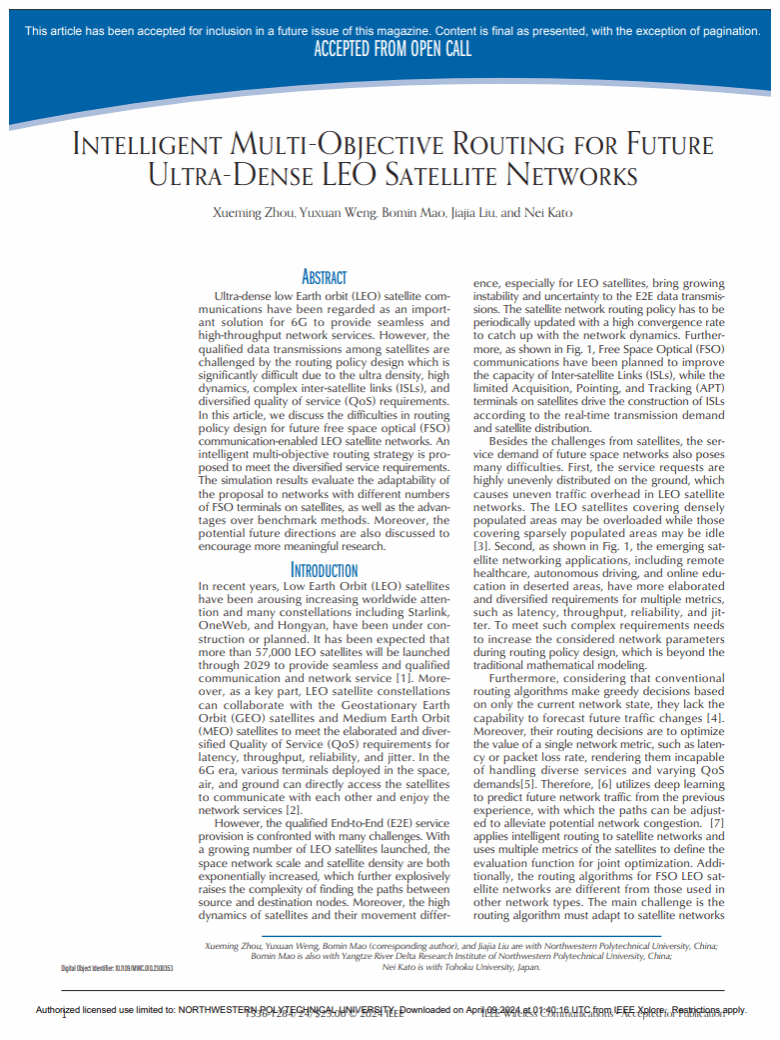 2022年12月至今,依托伟德官网bv1946空天地一体化大数据应用技术国家工程实验室,翁宇瑄跟随导师毛伯敏教授开展低轨卫星网络相关科研工作。2023年,作为第二作者撰写论文发表在SCI 1区期刊IEEE Wireless Communications Magazine。2024年7月以来,参与清华大学网研院实习,跟随导师开展天地融合互联网相关科研工作,作为员工第二作者成果已发表至CCF A类会议IEEE S&P(网络安全领域顶会)以及计算机网络领域CCF A类会议IEEE INFOCOM。研究生阶段,翁宇瑄将前往清华大学网络科学与网络空间研究院继续深造,为国家天地融合互联网安全贡献自己的力量。