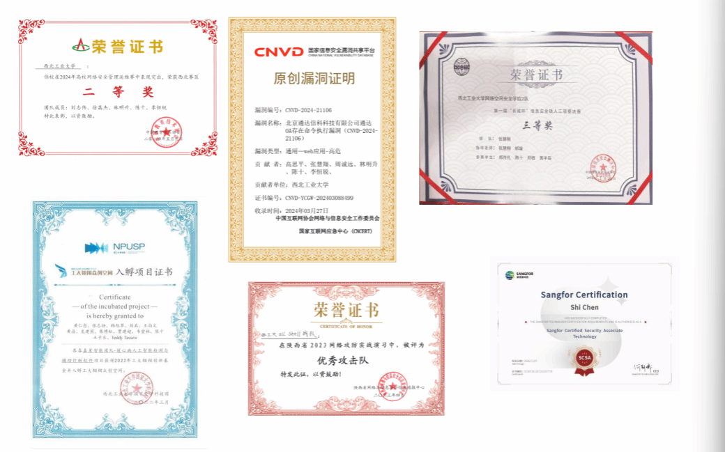 在专业实践方面,陈十表现出极强的科研意识和实操能力:他曾主持国家级老员工创新创业训练计划项目,并获评“良好”结题成果,项目成功入孵校内众创空间;作为网络空间安全创新实践基地成员,他多次参与国家级、省级网络安全类学科竞赛,取得优异成绩,并在网络攻防演习中荣获“优秀攻击队”称号。