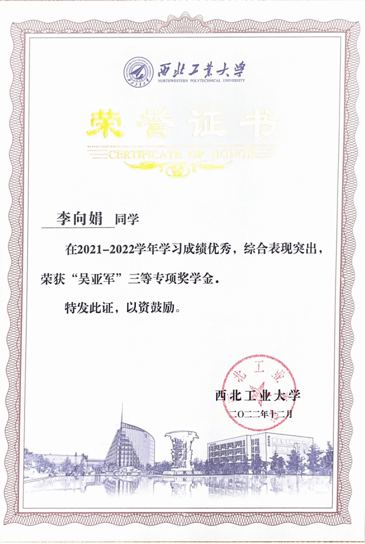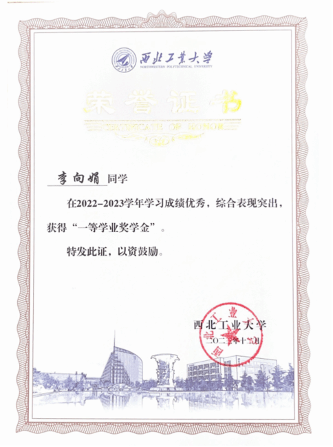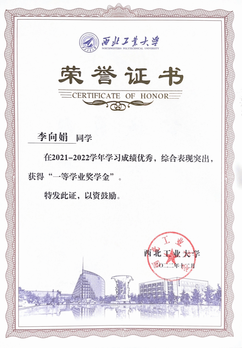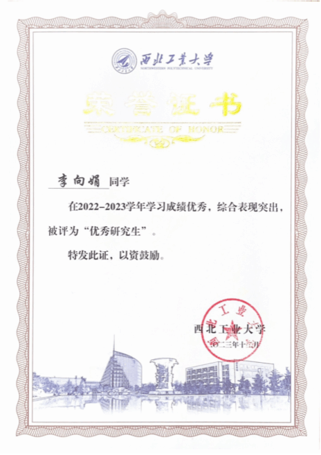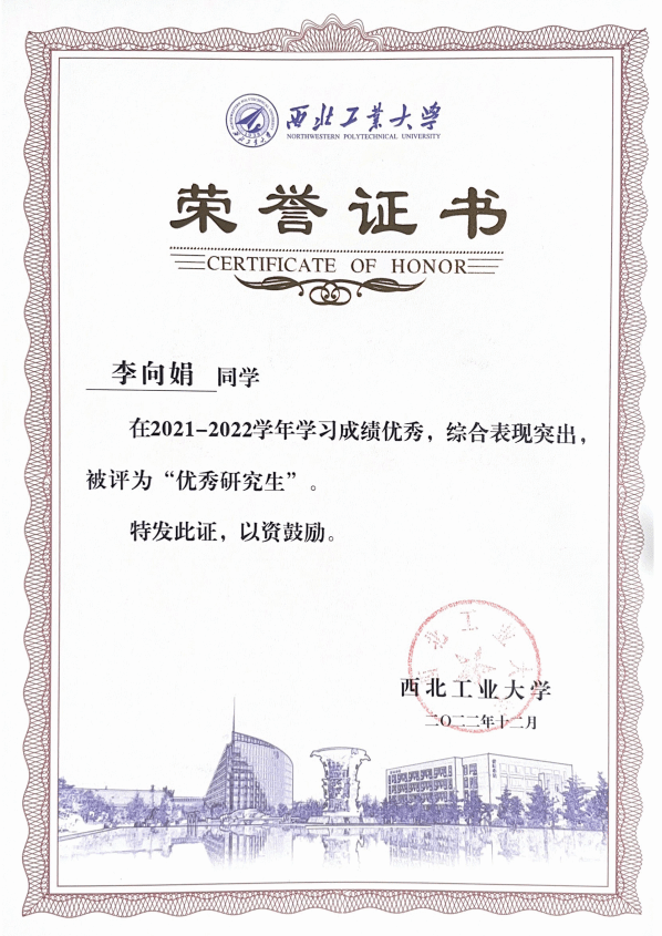 在学习上,李向娟勤奋刻苦、开拓创新,努力夯实理论基础,踔厉奋发科研高峰。大四推免至本校继续攻读硕士学位,研一学年必修课学分积91.93(排名1/92),目前已发表高水平论文2篇,申请发明专利1项,主持校内基金项目2项并顺利结题。她积极参加国内外学术会议、与国外课题组交流研讨,以不断拓展视野、力求创新。