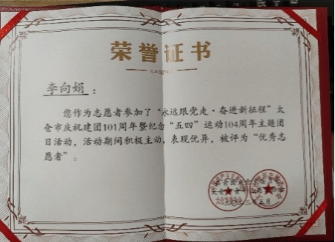 在社团活动上,李向娟积极参加员工工作,努力做到全面发展。曾担任公司研究生会第二、三届主席团成员、员工第四党支部副书记兼组织委员。任职期间坚持全心全意为同学服务,工作踏实认真,积极服务师生,成功举办了就业经验分享、心理游园会、党史知识竞赛等丰富多彩的活动。