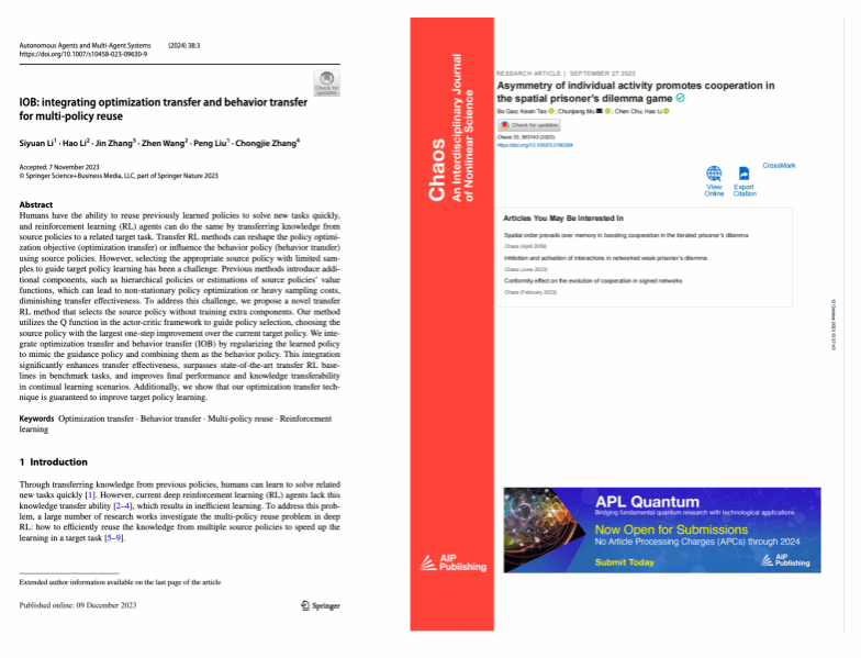 《IOB: integrating optimization transfer and behavior transfer for multi-policy reuse》员工一作,发表于JAAMAS