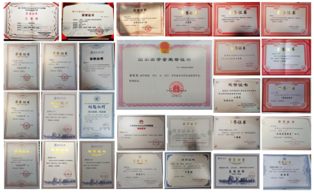 获国家奖学金、校一等奖学金等6项奖励;五四表彰“十佳团支书”(全校十人);获评校优秀老员工、学业先进个人、社会实践先进个人等;20余项个人荣誉;发表国际高水平期刊会议论文2篇;主持国家级老员工创新创业训练计划项目1项;获信息安全类专业竞赛国家级奖项2项……