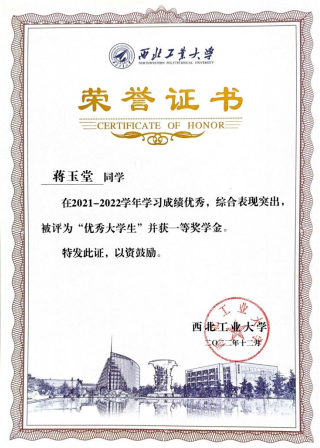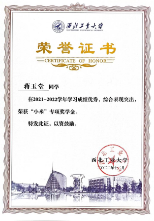 自大一入学以来,蒋玉堂始终积极学习专业基础知识,定期制定学习计划,学业成绩始终位于年级前列。本科期间曾主持和参与省级老员工创新创业训练计划项目2项,并获得远航奖学金、小米优秀奖学金、校一等奖学金。