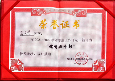 作为SC022001团支部书记,积极策划和组织各类团日活动,增强班级凝聚力,曾带领团支部获评“五星级团支部”和“先进团支部”等荣誉称号,本人也被评为“bevictor伟德官网优秀班干部”。