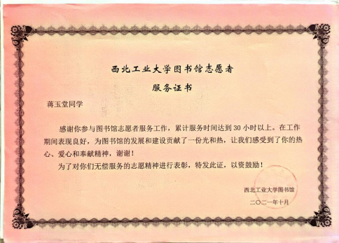除了学习之外,蒋玉堂积极投身社会实践和志愿服务活动中,曾担任校图书馆志愿者,负责书籍整理归档;于寒假参加‘云端’牵手,‘疫’路同行,为省人民医院的医护人员子女进行学业辅导,所在实践队获得抗击疫情专项实践特等奖;2023年暑假参加联合国可持续发展与青年领导力项目,在项目活动中极大地拓展了国际视野,于各方同学缔结了深厚的友谊。