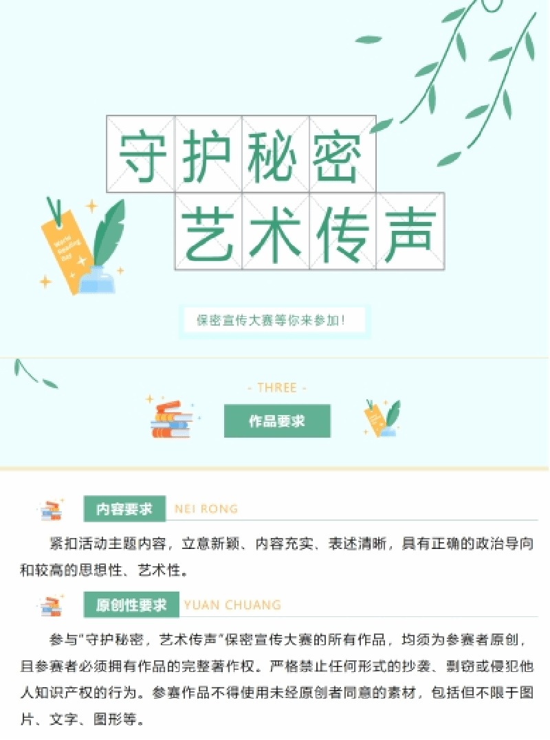 保密教育是国家安全教育的重要组成部分。在保密宣传月期间,员工会联合公司保密处开展保密主题艺术创作大赛,鼓励同学们通过绘画、摄影、短视频等多元形式表达对国家秘密保护的理解与支持。这场创意活动不仅为同学们提供展示才华的平台,也是一堂生动的国家安全实践课程,有效增强了保密意识、责任意识和国家安全观念。