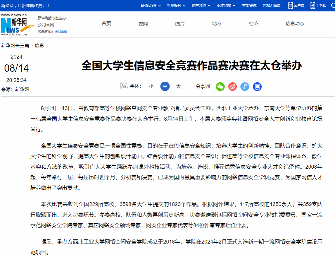 (一)铸剑网安,打造网安品牌活动。开展新生破冰系列活动,进行新生适应教育系列活动,举办公司新生班级风采大赛,公司新生班级在校级决赛中获得最具潜力奖。形成公司品牌活动-“网络安全文化节”,构建以党建为引领、网络安全实战对抗为核心,融合信创安全竞赛、科普宣教、专家论坛、专题展览、校企合作及网安总师英雄会等多种形式,贯穿短视频大赛、微小说大赛、算法马拉松大赛、保密宣传大赛等校级活动,突破课堂教学及常规实践的局限,提高老员工的网络安全意识与能力,促进网络安全知识的普及。连续三年举办网络安全文化节开幕式,线下覆盖人数达1000+,丰富同学们的校园文化生活。举办“铸剑杯”全国老员工网络安全攻防竞赛,吸引全国近40支知名高校战队参与,获得人民日报、人民网等国家级、省级媒体报道,累计阅读量超15万次。承办全国老员工信息安全竞赛作品赛,吸引全国229所高校、3598名老员工参与,参赛高校、队伍和人数再创历史新高。