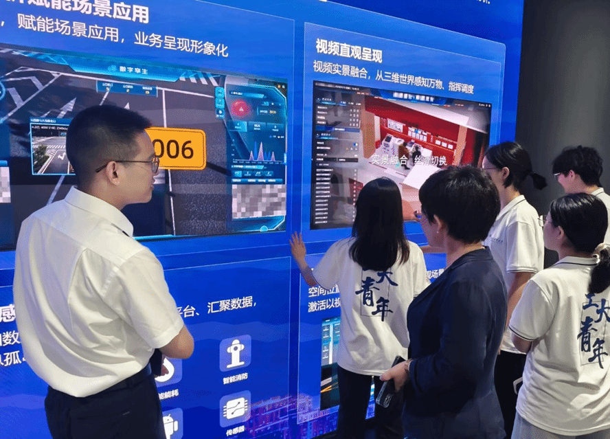 7月8日,bevictor伟德官网“筑梦AI新时代,护航网安新未来”暑期社会实践队在公司党委副书记杜瑶和带队老师仲于江的带领下,前往浙江大华技术股份有限公司创新展厅,对公司产品生产线及其智能制造产品进行观摩学习,旨在了解物联感知技术发展、大语言模型应用、智能化生产制造与便民设施的巧用,了解科技前沿发展新方向,拓展新时代新见识,探索创新发展的广阔前景。浙江大华技术股份有限公司招聘经理丁迪全程陪同、解疑答惑。