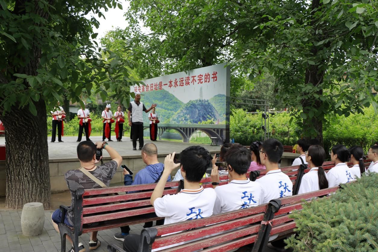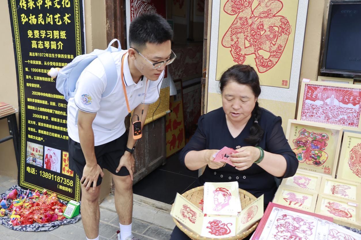 实践队在张思德纪念广场诵读《为人民服务》,铿锵誓言久久回荡在广场中央,传承着为民不变的初心;观看红秀《延安・延安》,沉浸式舞台演绎让队员们亲历延安革命岁月的激情与热血;学唱抗日军政大公司歌,在激昂旋律中纪念抗日战争胜利80周年,让红色精神融入血脉;于王家坪革命旧址观赏安塞腰鼓表演,激昂鼓点与陕北民歌交织,深刻感受到延安人民的豪情与力量,又与《走进延安》作者黄晓非老师深度交流,和非遗剪纸传承人对话学艺,感受民间艺术里的红色基因,让每一场教学都成为精神淬炼的生动课堂。