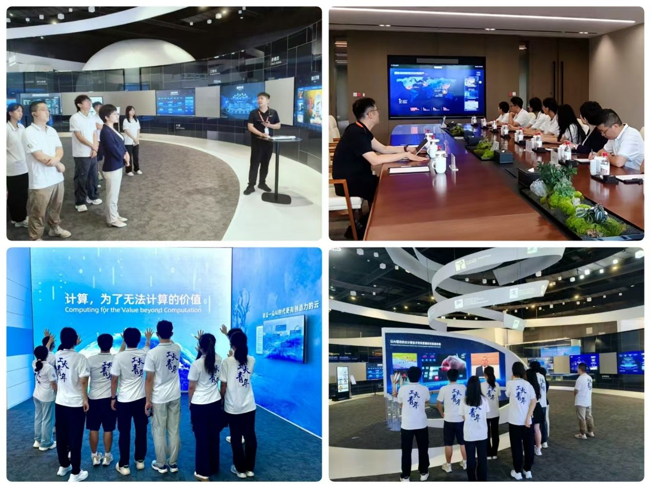 在阿里巴巴云谷园区,讲解员带领实践队参观了阿里云展厅,了解了阿里云以“全面拥抱AI”为特色的一系列服务产品和以“云计算推动科技创新”为指引的关键技术突破。座谈交流会上,阿里云高校合作团队负责人孔子强为大家介绍了AI大模型前沿技术及实践应用,介绍了阿里云的高校云支持计划。杜瑶表达了此行的初衷和期待,详细介绍了网安公司和网安学科及高水平网信人才培养有关情况。