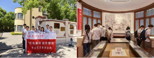 实践队的寻根之旅,始于复兴路上陈望道先生的故居。师生们静立于先生当年翻译《共产党宣言》的书房,一盏油灯、几只仿真粽子、泛黄的手稿影印件,共同还原了“真理的味道有点甜”的历史场景。这份“甜”,在历史的回响里愈发深邃:它不仅是墨汁的误食,更是信仰在灵魂深处破土发芽的悸动,是百年沧桑中始终不灭的星火。