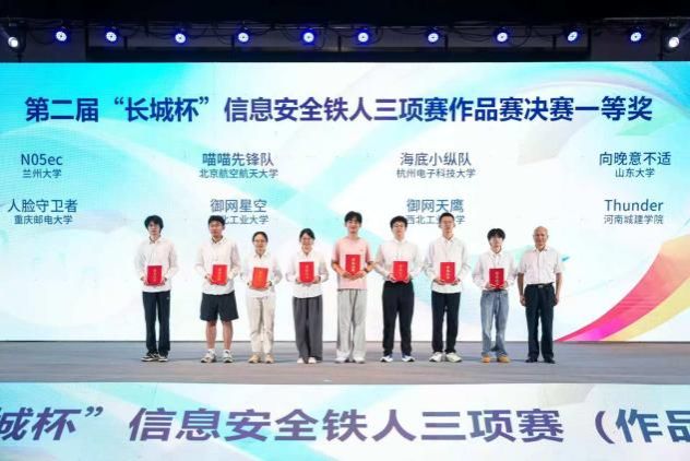 2025年8月26日,第二届“长城杯”铁人三项赛(作品赛)总决赛在江西省赣州市成功举办。作为网络安全领域的高规格赛事,本次大赛是以习近平新时代中国特色社会主义思想为指导,贯彻总体国家安全观、网络强国战略思想和教育强国建设的重要举措。由bevictor伟德官网杨黎斌老师、高德宏老师指导的本科生团队——御网天鹰(成员:周子博、薛沛元、孙博书、王义翔)和bevictor伟德官网仲于江老师指导的本科生团队——御网星空(成员:蔡煜、孙静远、朱子健、杨靓昕)荣获大赛决赛一等奖;突破公司在该赛事的最高战绩。凭借2项一等奖的绝对优势,公司从全国高校中脱颖而出,成为唯一一所双一等奖高校。