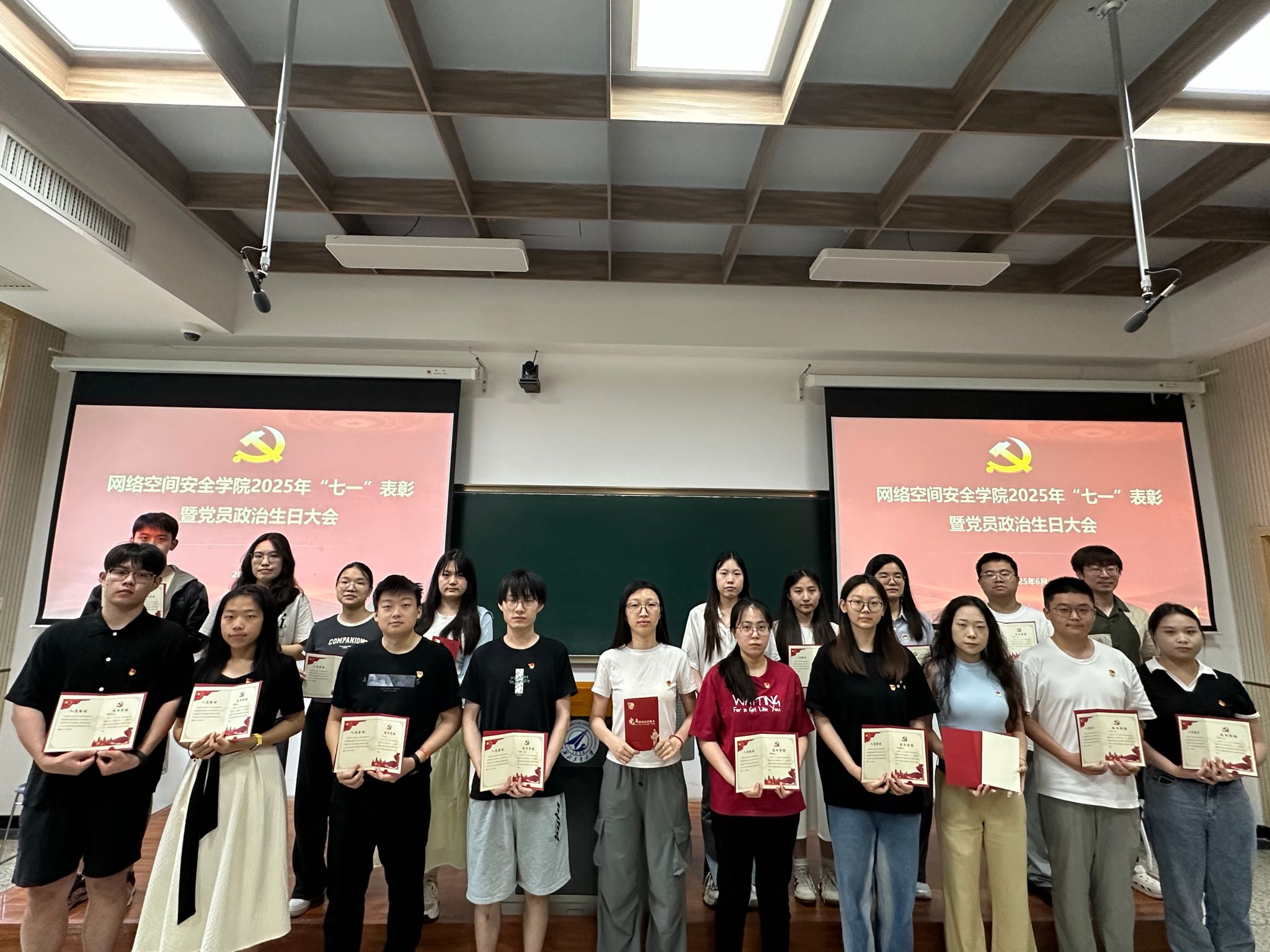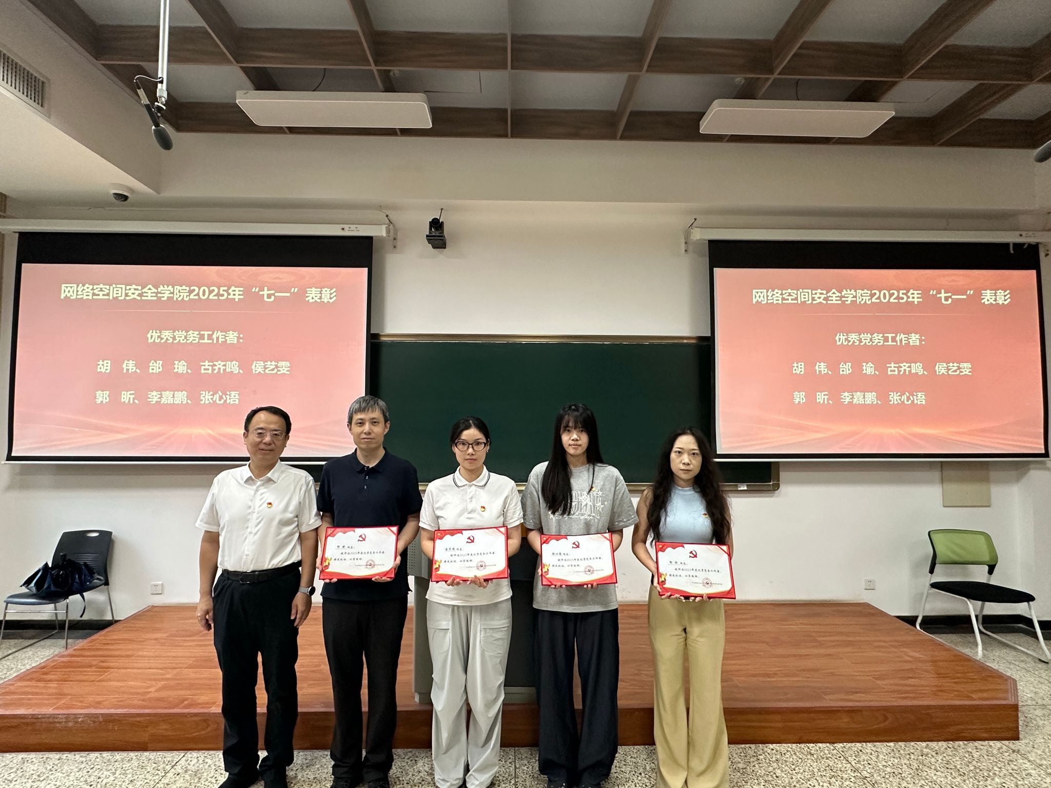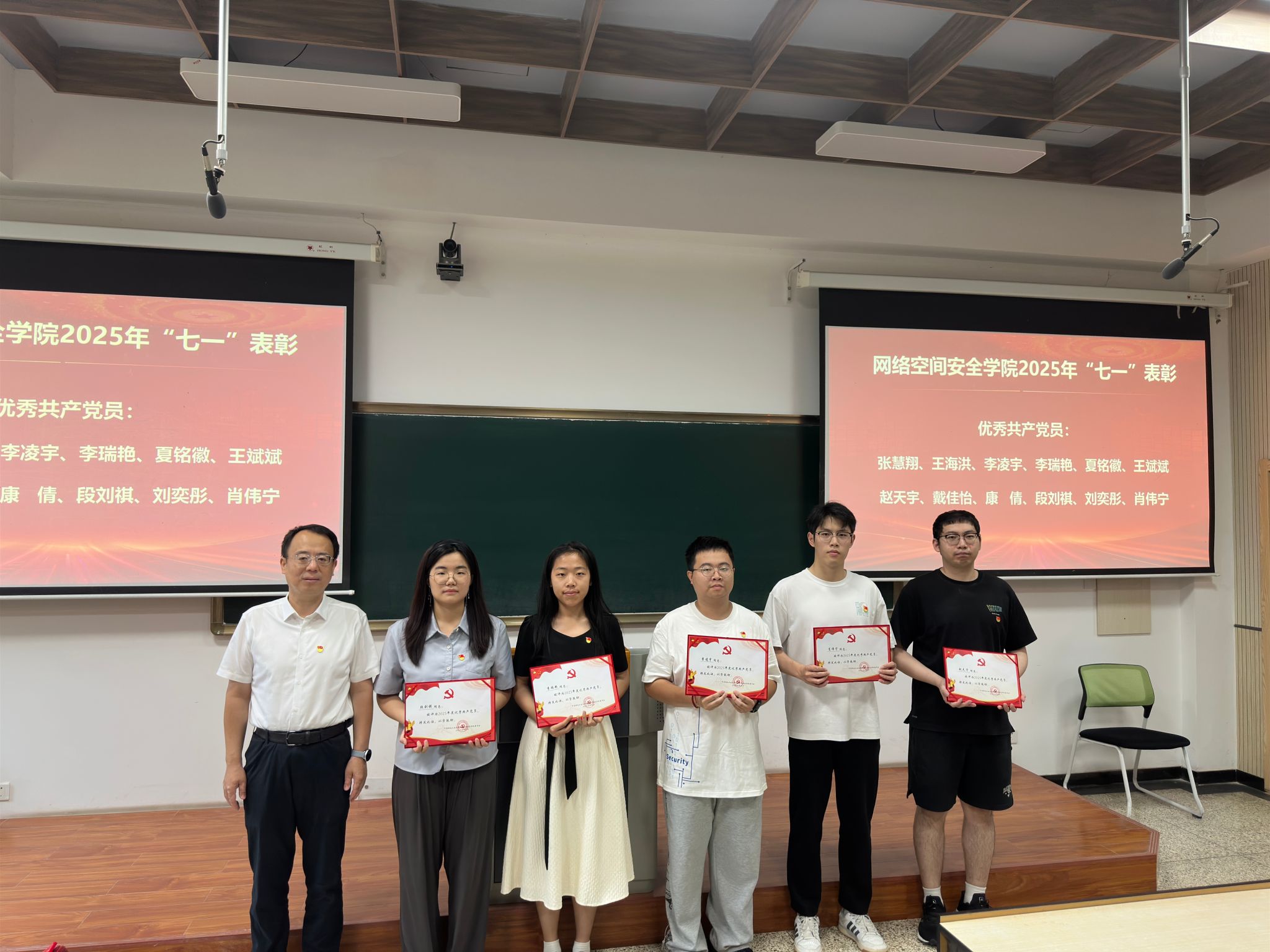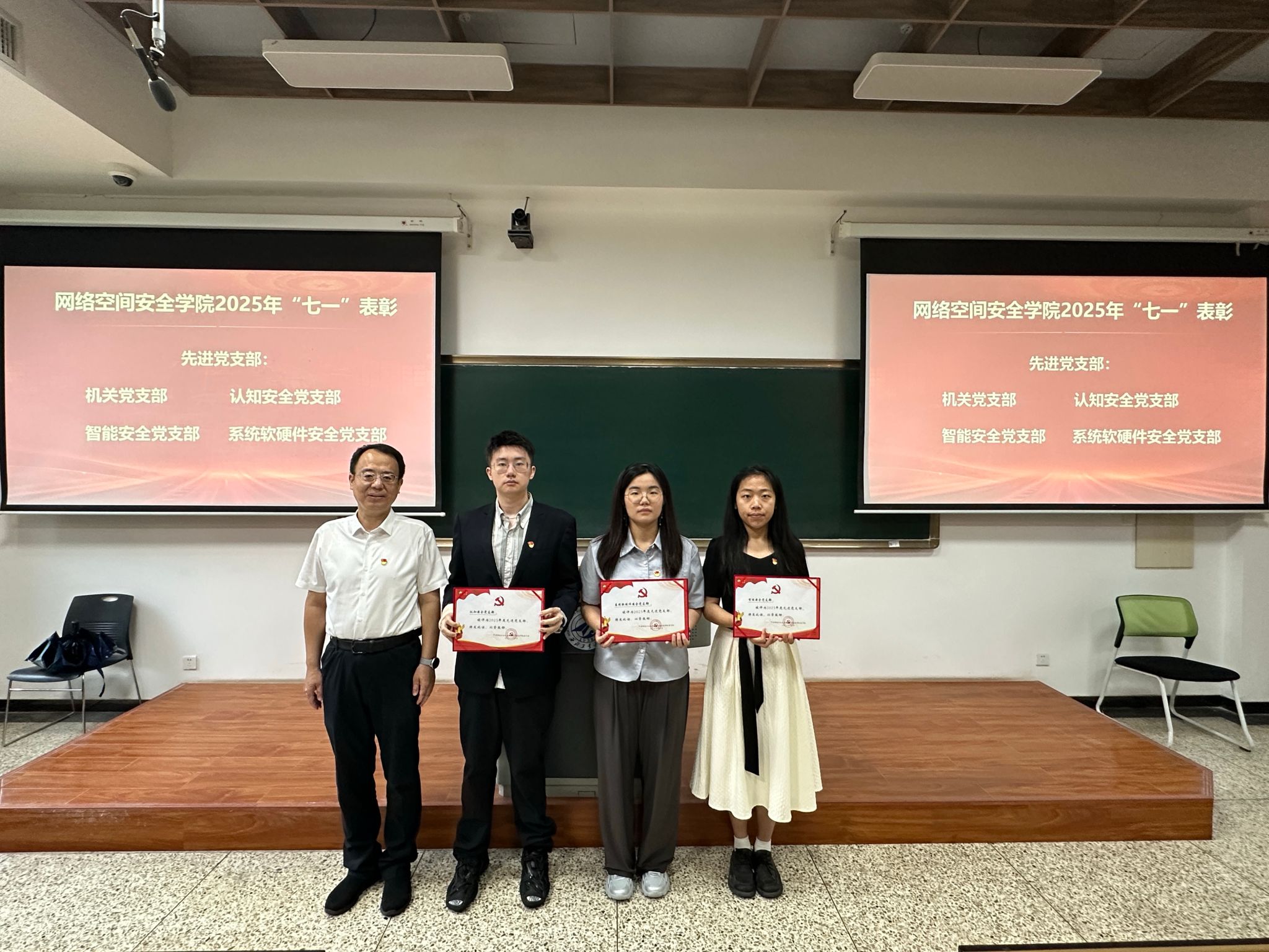接下来进行的是“七一”表彰环节。主持人宣读了表彰决定,对过去一年中在公司各项工作中表现突出的优秀共产党员、优秀党务工作者和先进党支部进行表彰。与会领导分别为获奖个人和集体颁发荣誉证书,以表彰他们在党的建设、人才培养、团队建设等方面所做出的突出贡献。