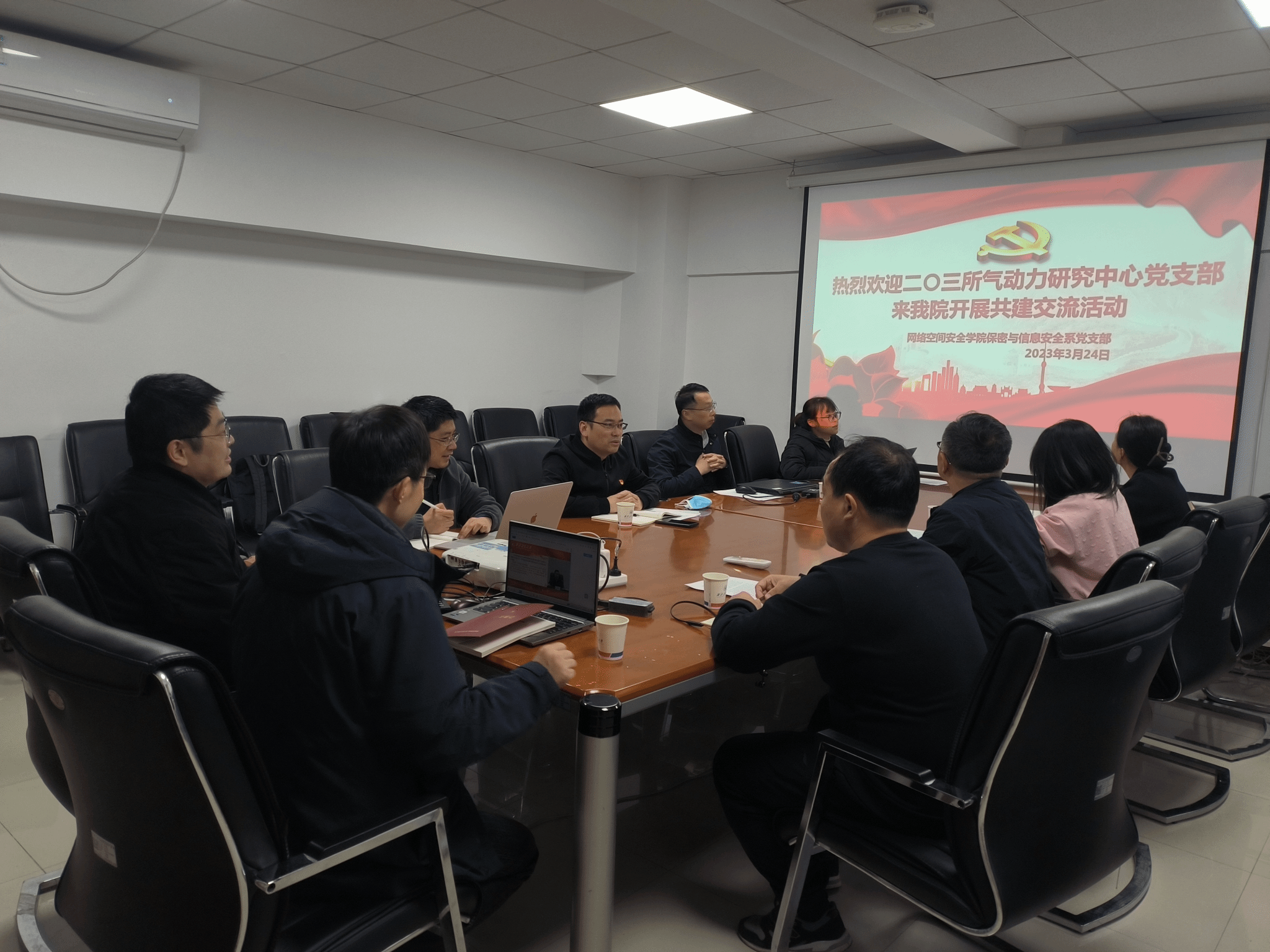 为全面构建“以共建促党建、以共建促合作、以共建促发展”的党建工作新格局,进一步落实共建双方全方位、深层次的合作交流,3月24日,bevictor伟德官网保密与信息安全系党支部与中国兵器203所气动力研究中心党支部在爱生楼401会议室开展了党建共建交流活动。会议由公司党总支副书记禹亮主持,双方支部成员参加了本次共建交流活动。