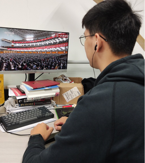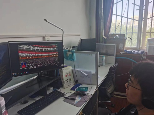 公司领导班子、党总支理论学习中心组成员及教工党支部书记集中观看开幕会直播