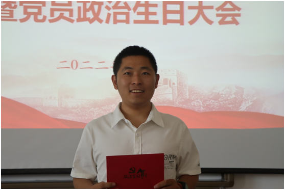 接着是党员集体过“政治生日”环节,与会领导向过政治生日党员赠送“政治生日”贺卡和《请党放心 强国有我》书籍。党员代表王省欣同志从初心是前进的动力、是做事的准则、是担当几个方面追忆入党初心谈感受,并以近几日公司网络受境外不法分子的攻击为例,提醒同学们作为网安公司的员工,责任即为守护国家的网络安全,要不忘初心使命,用自己所学维护国家网络的一片净土。