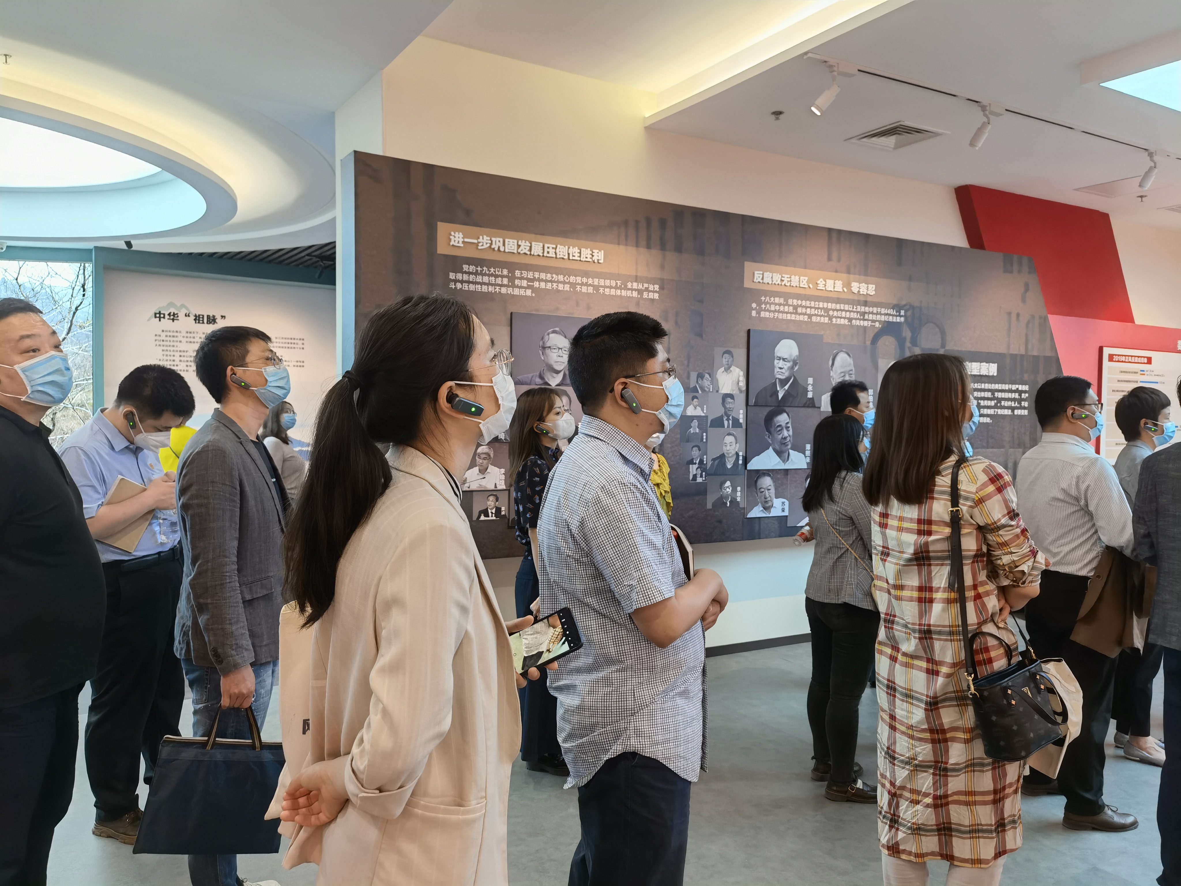 活动由观看短片《立碑》(领袖三问,扪心三问)开始,大家跟随讲解员依次参观了“省(请你思考)、心(不忘初心)、律(铁打党纪)、诫(沉痛教训)、儆(警钟长鸣)、光(方向指引)、率(榜样力量)、进(全新篇章)、诺(照镜自警)”9大板块。整个参观采用展板形式结合声、光、电等数字化技术手段,给人以很大的触动。
