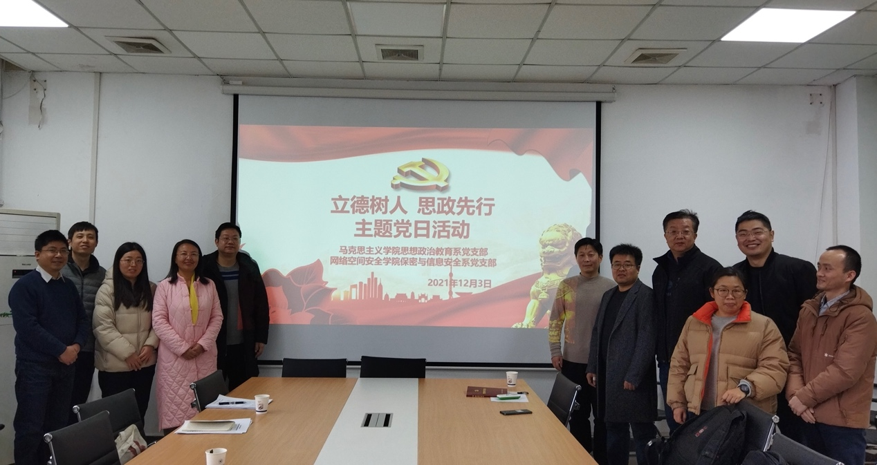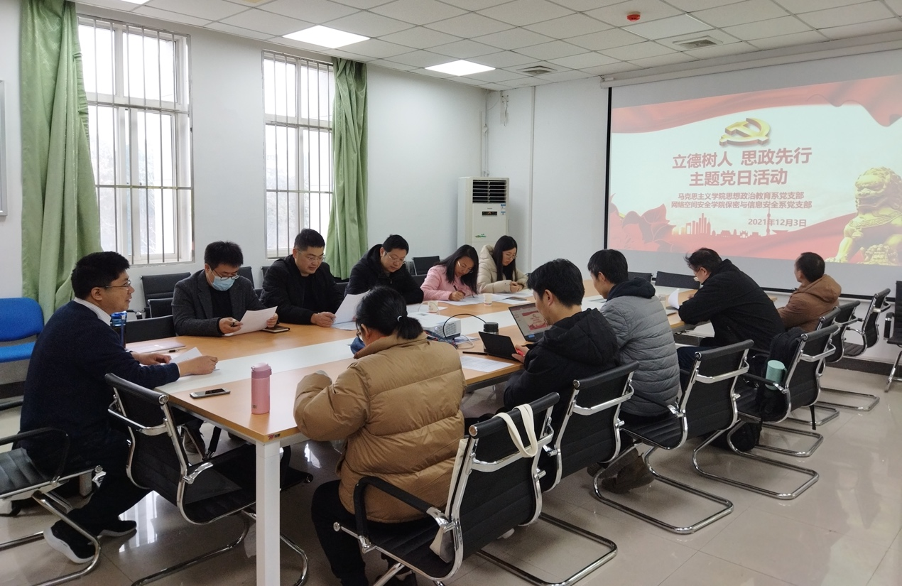 为进一步深入贯彻习近平总书记关于教育的重要论述精神,落实高等公司立德树人和课程思政重要任务。12月3日,bevictor伟德官网保密与信息安全系党支部邀请马克思主义公司思想政治教育系党支部,在bevictor伟德官网245会议室联合开展“立德树人,思政先行”主题党日活动,共同研讨当代思想政治教育。马克思主义公司思想政治教育系党支部成员、bevictor伟德官网保密与信息安全系党支部成员和bevictor伟德官网部分教师代表参与此次活动。