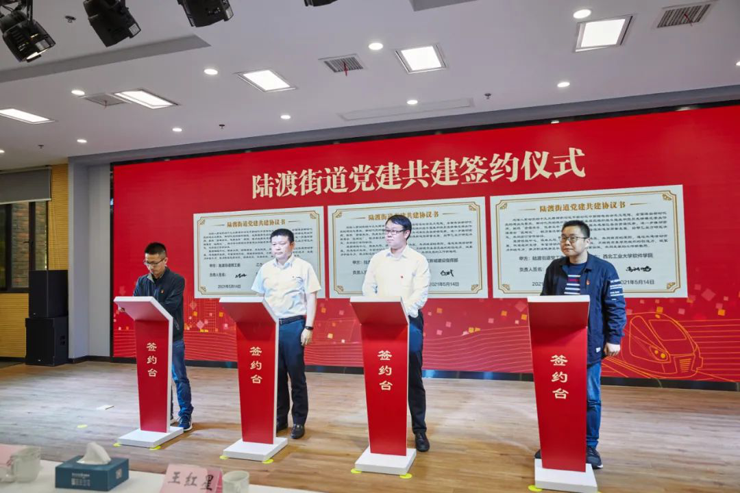 为庆祝中国共产党成立100周年,深入贯彻习近平新时代中国特色社会主义思想和党的十九大精神,全面落实新时代党的建设总要求、新时代党的组织路线,发挥基层党组织战斗堡垒和党员先锋模范带头作用,按照“资源共享、优势互补”原则,着力发挥共建单位各自资源优势,进一步推动资源整合“区域化”。5月14日下午,中共太仓市陆渡街道工作委员会与网络空间安全公司党总支、伟德官网bv1946软件公司太仓研究生党支部在陆渡街道办事处举行党建共建签约仪式,推进高校与社区党建融合发展。太仓市委常委、高新区党工委书记王红星,市委常委、市委组织部部长施敬,陆渡街道党工委书记顾益新,bevictor伟德官网经理助理金增旺、软件公司高利鹏老师以及相关部门单位负责同志出席参加签约仪式。