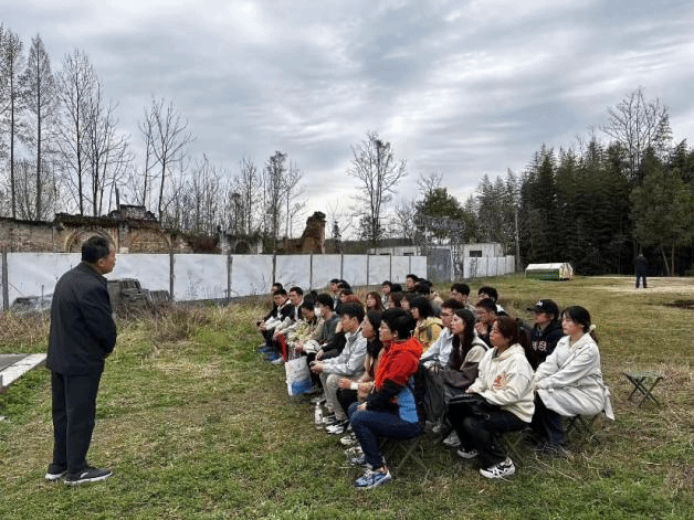 在国立西北工公司旧址旁,党员们认真聆听了城固县博物馆原馆长苟保平老师的现场授课。馆长以其丰富的实践积累和深刻的解读,向党员们再现了抗日战争时期,诞生于民族危亡之际的国立西北联合大学经历了“自合至分”和“辗转迁徙”的发展轨迹,西北联大分至五校之一的国立西北工公司的学子们不畏艰难、刻苦求学的感人事迹。艰苦的办学条件与严谨治学的校风并存,深山幽谷之中员工们勤奋苦读使得古路坝教室的煤油灯火彻夜不灭,师生们用亲身经历实践了教育救国、科技救国的价值理念。正是凭借着这样的精神与情怀,古路坝先后走出了“中国航天材料之父”师昌绪、清华大学原董事长高景德等十余位两院院士。“古路坝灯火”激励着后人追忆教授们教育救国的理念,激励学子们以学报国的情怀。